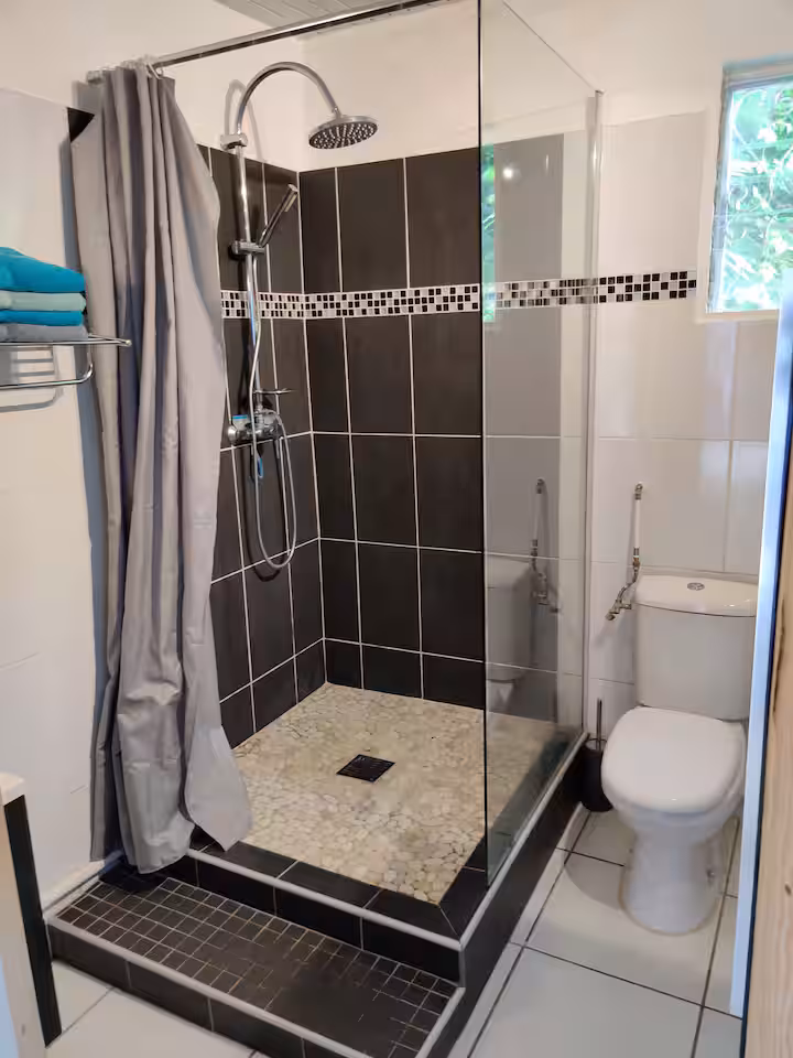 Vous trouverez des serviettes de bains et tapis de bain sur le support à serviettes, de petites serviettes et gants de toilettes dans le meuble. C’est serviettes sont réservées pour la douche, merci de ne pas les emporter à la plage. Si vous n’avez pas de serviettes de plages n’hésitez pas à nous en demander.