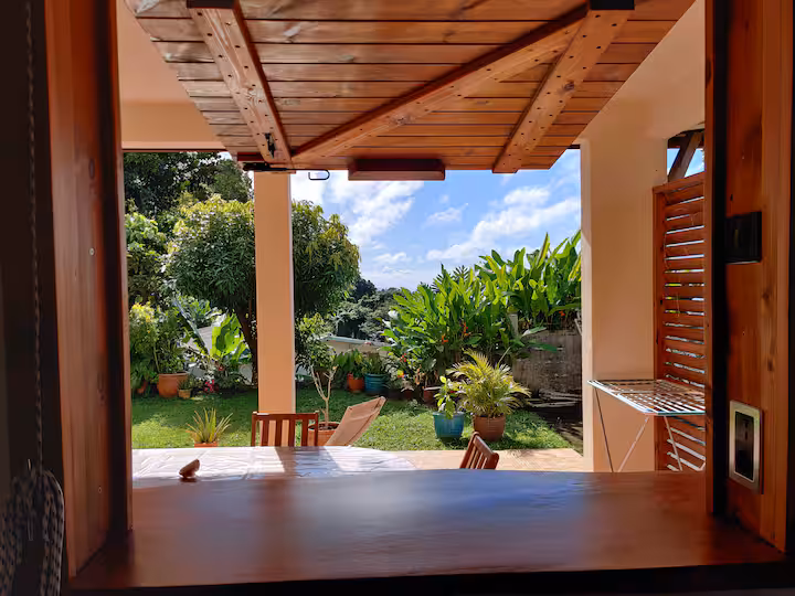 L’interrupteur de la lumière (et du ventilateur plafonnier) se trouve à gauche du bar. Le ventilateur plafonnier au-dessus du canapé d’extérieur, s’utilise avec la télécommande (mais l’interrupteur du bar doit être actionné), vous pouvez faire varier l’intensité de la lumière et de la ventilation. Merci de l’éteindre lorsque vous n’êtes pas au logement.